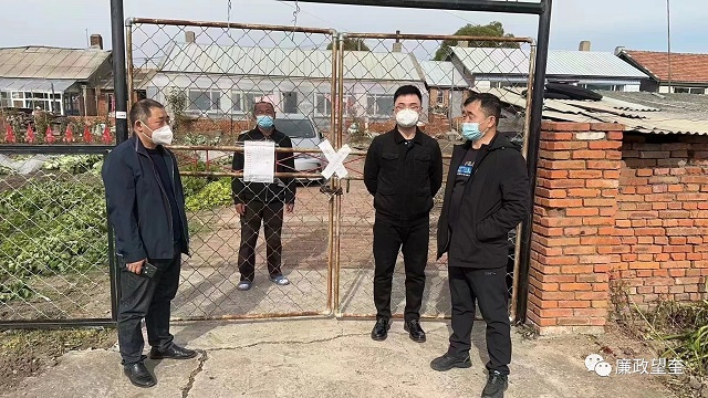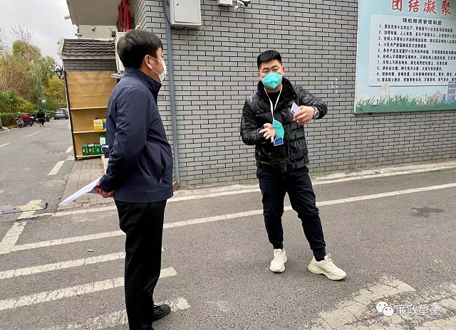 县纪委副书记、县监委副主任石江涛到部分居民小区检查疫情防控措施落实及包保单位人员在岗等情况。