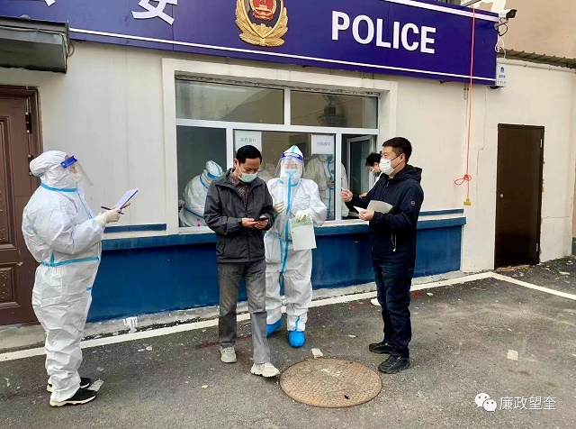 县纪委常委、县监委委员高连秋到荣华城小区检查督导全民核酸检测工作及包保单位人员在岗等情况。