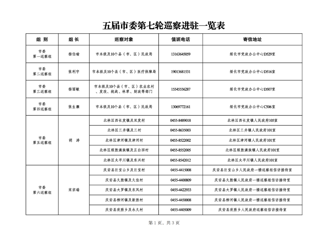 五届市委第七轮巡察完成进驻(附组长名单、联系方式)