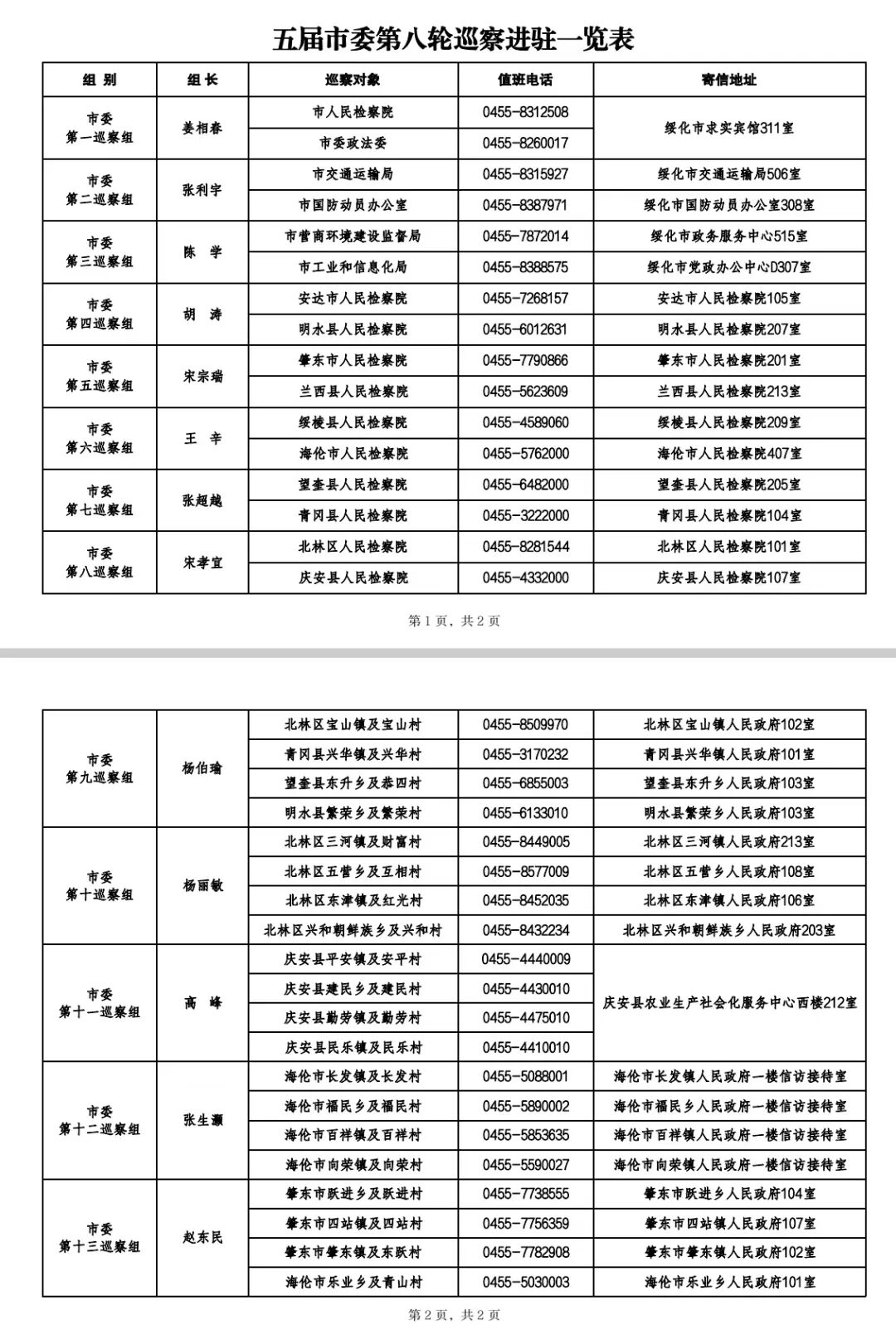 五届市委第八轮巡察完成进驻 (附组长名单、联系方式)